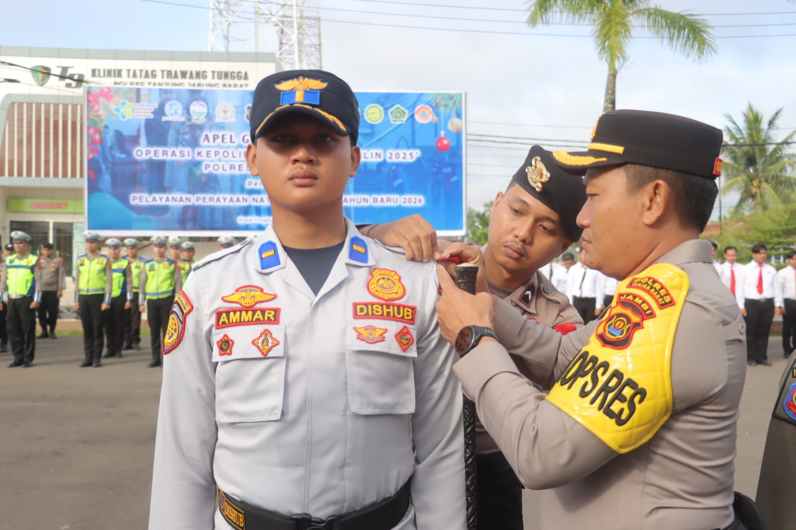 Apel dipimpin langsung oleh Kapolres Tanjab Barat, AKBP Agung Basuki, S.I.K., M.M., bersama Wakil Bupati Tanjab Barat, Dr. H. Katamso SA , SE., ME. Peserta apel terdiri dari personel gabungan TNI (Denpom dan Kodim 0419/Tanjab), Satpol PP, Dinas Perhubungan, Dinas Kesehatan, serta petugas Damkar.